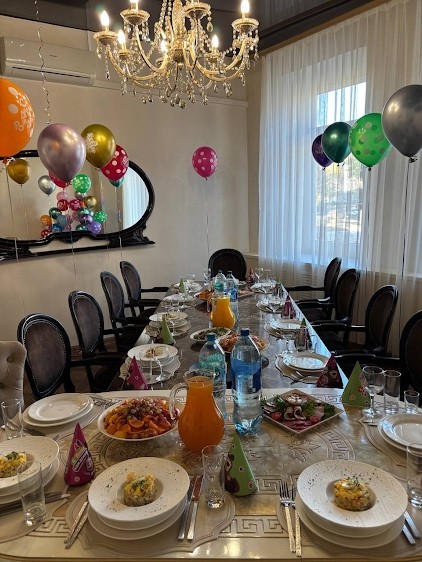 Третий банкетный зал ресторана «Победа», площадью 25 квадратных метров, с радостью примет вас и вашу компанию из 12 человек. В зале есть всё необходимое для незабываемого вечера: телевизор и одно окно, из которого открывается великолепный вид на улицу.открывают прекрасный вид на улицу.